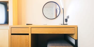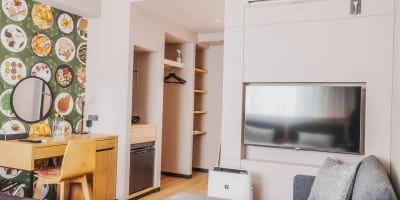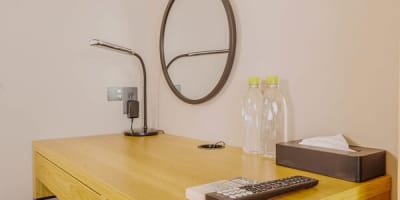 Wi-Fi、空調、液晶電視、鬧鐘、吹風機、電熱水壺、冰箱、附加濕功能空氣清淨機等全客房完備。