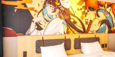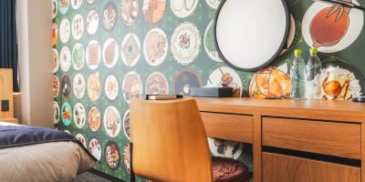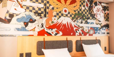 與京都藝術大學角色設計學系合作,房間的牆上裝飾著新進藝術家的藝術作品。