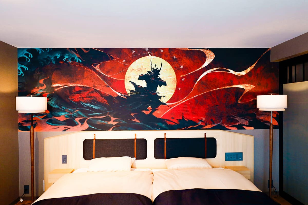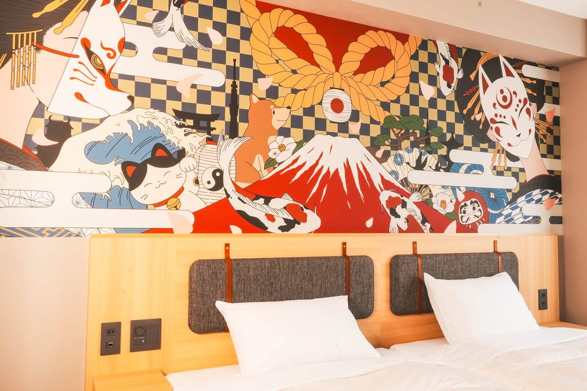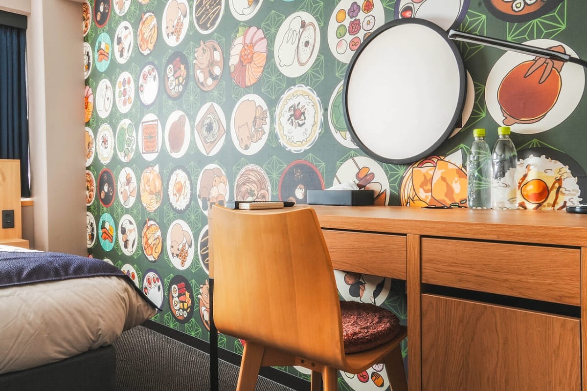 與京都藝術大學角色設計學系合作,房間的牆上裝飾著新進藝術家的藝術作品。