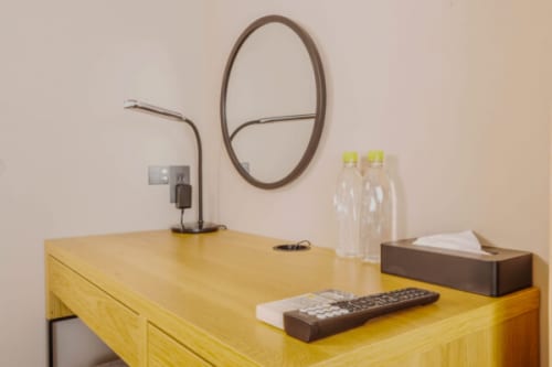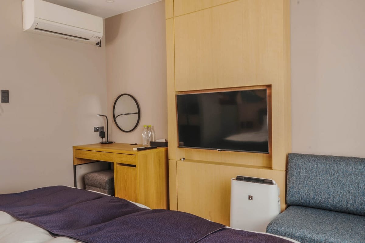 Wi-Fi、空調、液晶電視、鬧鐘、吹風機、電熱水壺、冰箱、附加濕功能空氣清淨機等全客房完備。